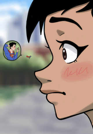 This is suggested bySo here's Lois from My Adventures with Superman as she has the shrunken hero in the palm of her hand after he was exposed to Pre-Crisis Red Kryptonite, as they're to have an interview about his small size.