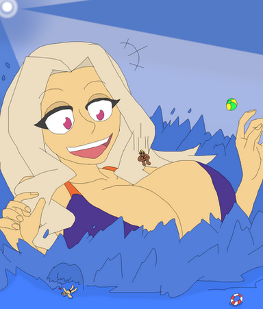 Summer Sizzler 2020 #6Anyway, here's Risky Boots as she towers over a certain shrunken half genie whom used her magical powers to build a sandcastle. She pleads for the Pirate Queen to not stomp away all of her hard work.