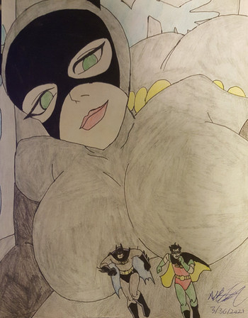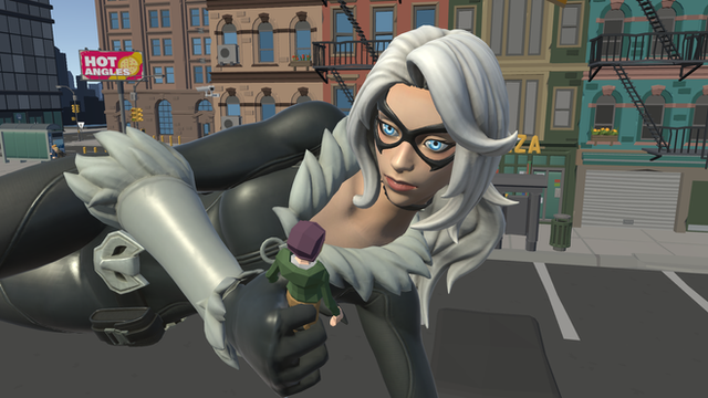 While I'm at it, I figured I do a Spider Man pic featuring Black Cat; a random idea that came to me suddenly when I was at work.Now then, the idea behind this is that during the video game movie tie in game of Spider Man 2, during the game there are missions involving Black Cat. Among the first few missions, in which you have keep up with Black Cat while swinging throughout the city; should you fall too far behind, she make comments that it looks like someone zap him with a shrink ray due to how far behind he is to her.