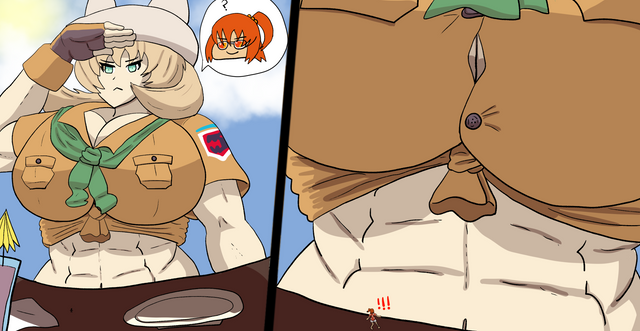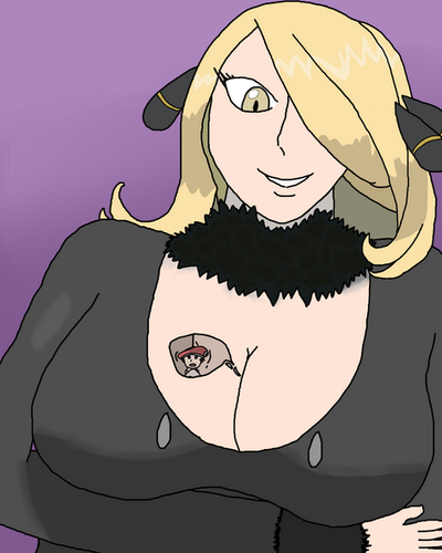 He suggested for Ruby Heart from Marvel Vs Capcom 2, so here she is as a giantess as she's not impressed by the people jumping about on her breasts.