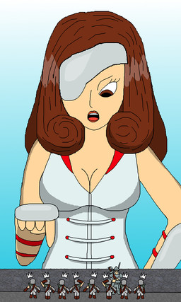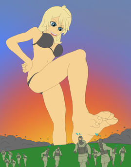 Hereβs Ashe from Final Fantasy 12 as a giantess as sheβs about to stomp onto a group of fleeing soldiers of the Archadian Empire.