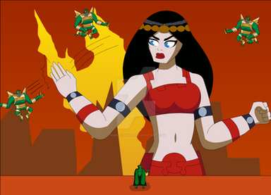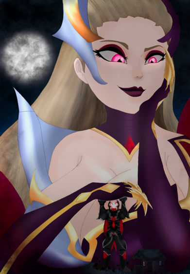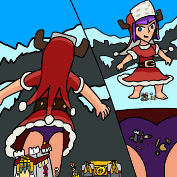 He suggested for the Witch from Clash of Clans. Here's Witch as a giantess terrorizing the The characters from the enemy side with her sheer size.