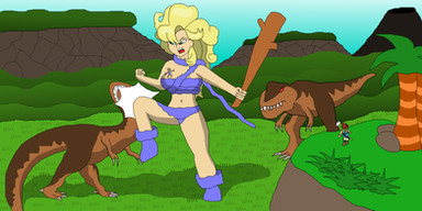 That dino is going to regret from picking Tarzan as his next meal as Jane is about to kick him in the face