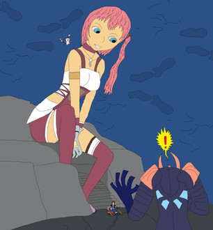 Strange how seeing something like that brought the idea of the characters from Final Fantasy XIII, with Snow all shrunken down and almost being step on by Lightning, whom in a trance of the snowy landscape dosen't see him.