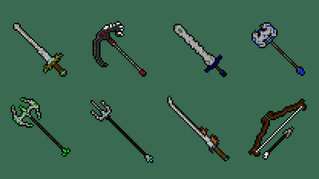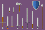 These are the weapons available in my WIP game "Korahis" ~ Korahis being the name of the realm it is set in. As you can see, they can vary from small to huge swords. Several weapons can only be wielded by certain races, such as Goliaths, due to their massive size (weapon and race) This sheet is certainly not finished, and I intend to continue adding weapons to the game. Foreeeever.Some weapons give player characters different abilities to learn - in the same way as characters equip weapons on Final Fantasy Tactics A2 and can learn abilities, you can do it on this. Abilities vary from throwing summoned arrows to summoning demigods to turning the enemy to a frog