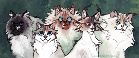 Caracal pals vibinFrom left to right, they're: Starling, Finch, Pipit, Dove, Sparrow