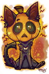 omg I love halloween Β this is so cute and awesome!! And the blue eye on it's tail really reminds me of sans xD