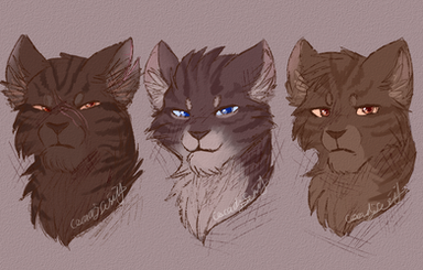 I think it's Hawkfrost, Tigerstar [as in the FIRST Tigerstar, not Tigerheart-Tigerstar] and Brambleclaw You can tell because of the signature Tigerstar-nose-bridge scarΒ