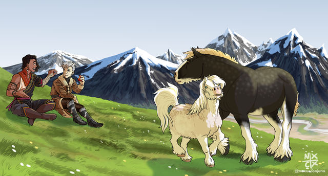 #arpg #characters #commission #equine #equineart #horse #horseart #mountains #rider #splash #harpg #haspar #morenezen