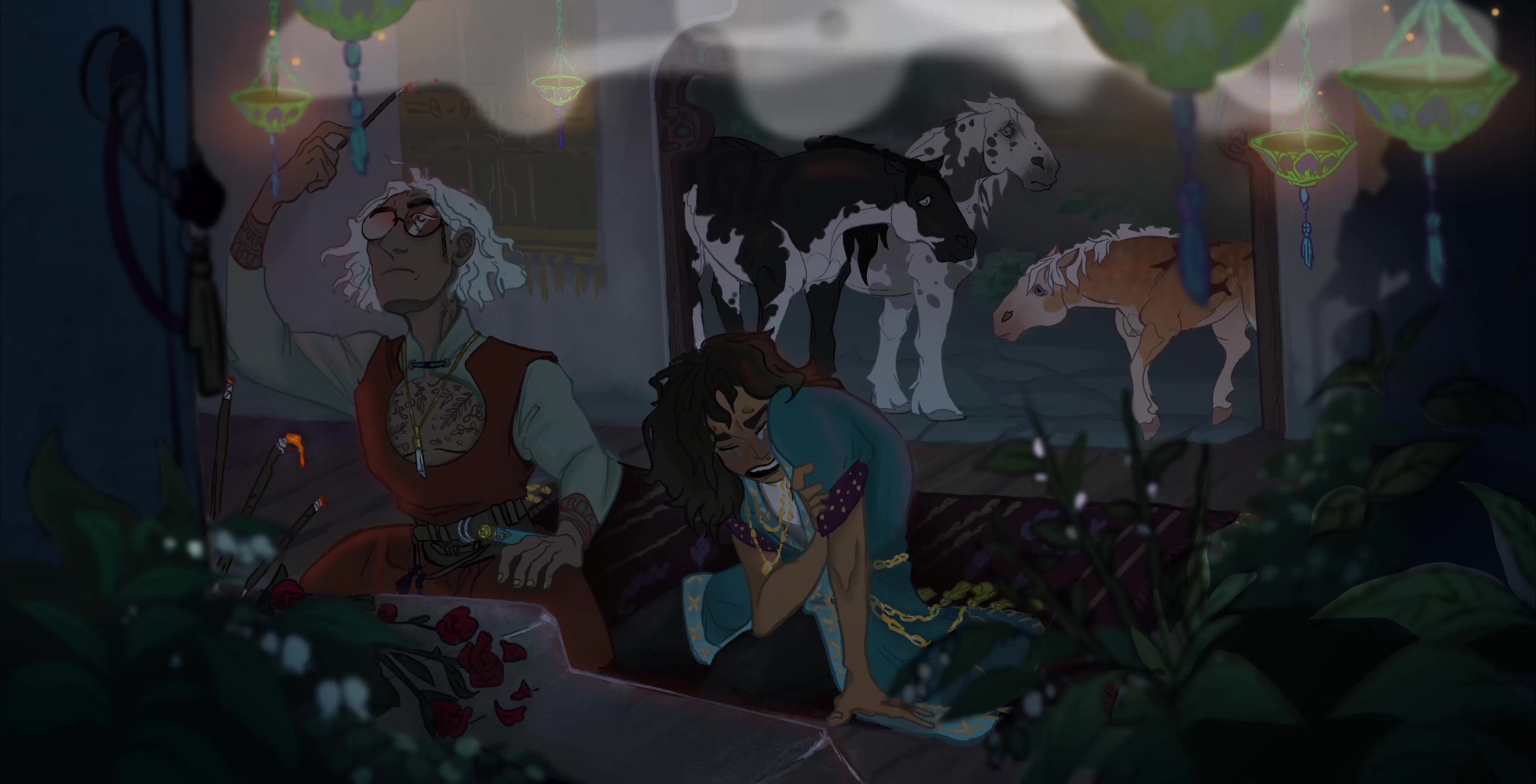 The dusk was green, and the air smelt heavy with an impending storm. In the dry grass, creatures scuffled. No doubt they sensed the change in the wind and were searching for shelter. Aybek watched the sky for a moment, before an impatient snort from Bansari brought him back.