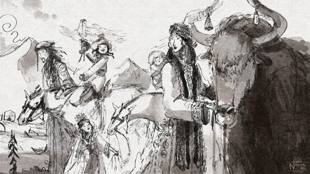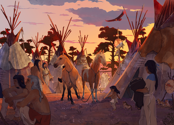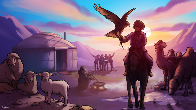 #characters #clouds #equine #equineart #ger #home #horse #horseart #magic #oc #steppe #sunise #sunset #tribe #magicprompt #jibita #morenezen