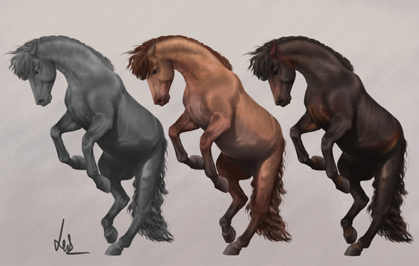 WIP for a contest Piece. I'm going to share with you how I changed this horses color.I use CS3 so it may vary from version to version.
