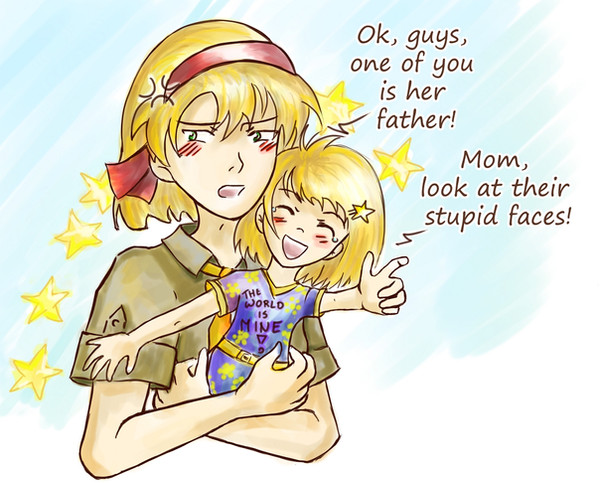 like father like daughter :'Dso, my friend wanted me to draw Arella and Beast boy as "normal people."