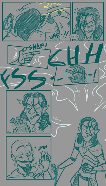 A little comic of a confrontation between my sorcerer, Gen, and the party Wizard, Illya.Not sure who allowed these maniac to learn spell craft, but at least they're mostly a hazard to each other...