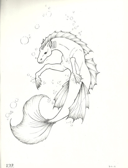 I was planning to mess with this further/colour it, but I actually really just like lineart sometimes!the hippocampus/hippocamp is my favourite mythical creature, incidentally.