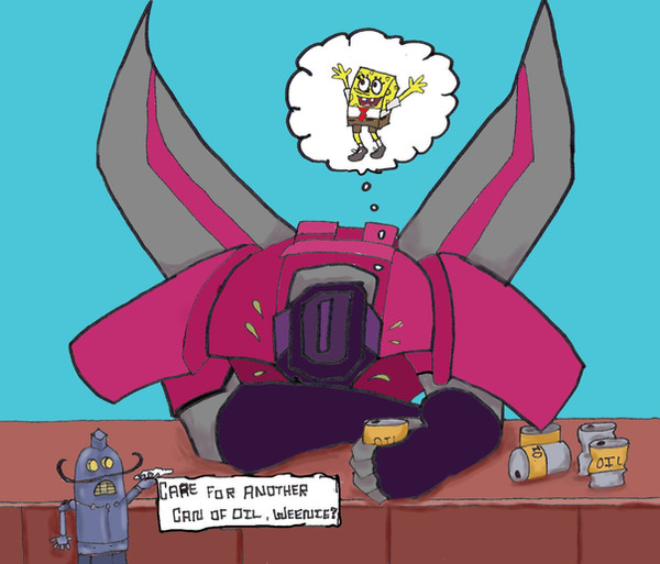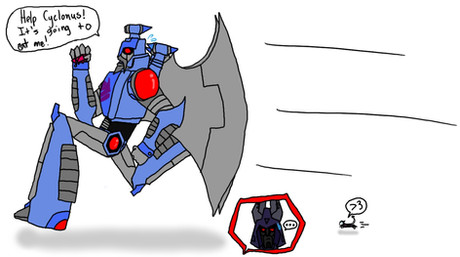 I just couldn't resist drawing something funny. Megatron is always ragging on Starscream for something...so this pretty much sums up his thoughts on his Second in Command.