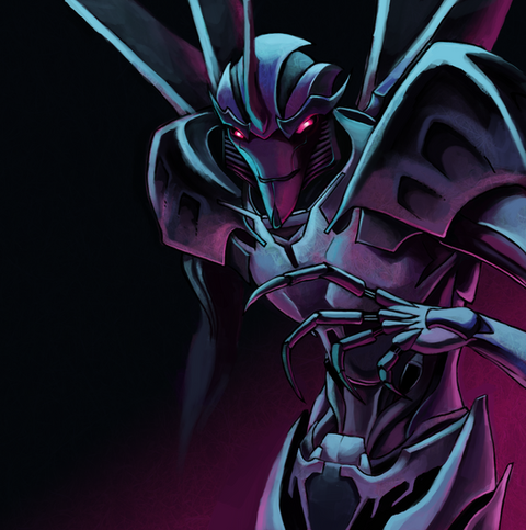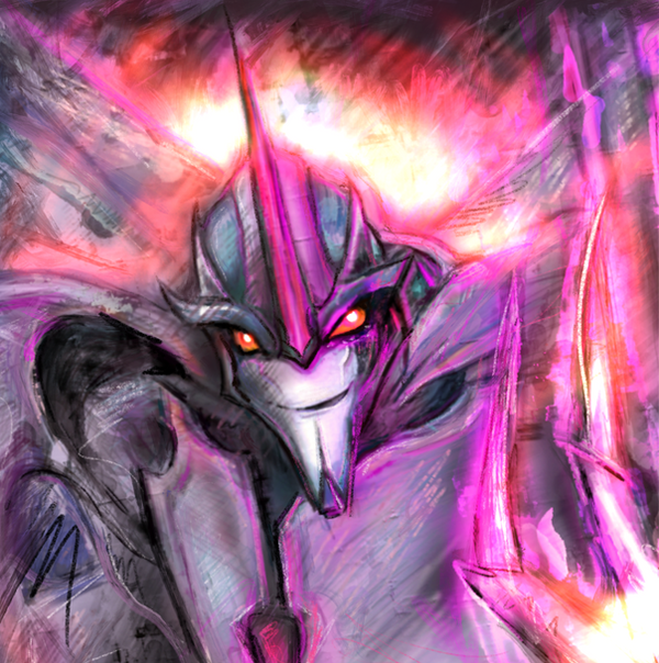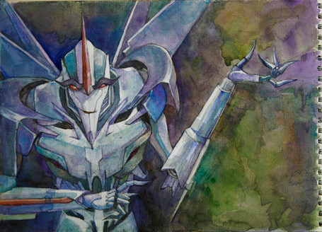 I wanted to do a painting of my favorite Starscream doing what he does best: Plot...evilly.Oil paint