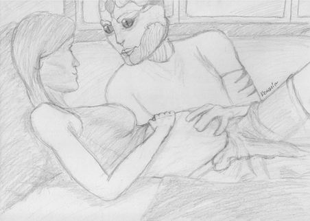 OK. Finally pulled it out and completed a request forShe wanted to see my OC Fire Blood sharing a tender moment with one of his pregnant females. As you can see she's expecting one of his offspring and though he's typically the crass, perverted sort, he has a strong attachment to family.