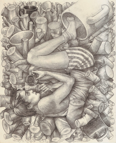 Drawn with a 0.5 2B mechanical pencil and a smudge stick on a regular, 90 gsm letter paper.