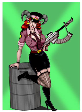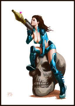 It's so witty and fun with a dash of danger. I especially like the creases of her skin around the grenade. Some nice detail there to show how soft and bouncy she is.