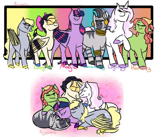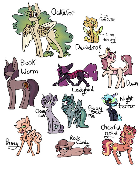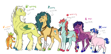 WELP. If you are curious about these characters, read below. Otherwise, These are like the next generation of the Elements of Harmony, but their personalities are more based around the flaws of each element (I know, edgy). They are not at all fleshed out yet, I didn't even make any cutie marks or names for them. I may turn this into a comic though. I did write their element in their handwriting though.Now, for a more in depth explanation. These characters are very new, and honestly came up with idea by mostly accident when talking to my brother about if MLP had a more dark or adult tone to it. So that's how these guys were made. (Super edge ahead) After a horrific event that all the alicorns had to sacrifice themselves to stop it, there were very few survivors, many species were almost extinct. To help the dying world, the Elements of Harmony called upon new wielders, but didn't have many options. The old wielders were dead, and there were so little candidates to choose from. That made the Elements choose these six ponies.