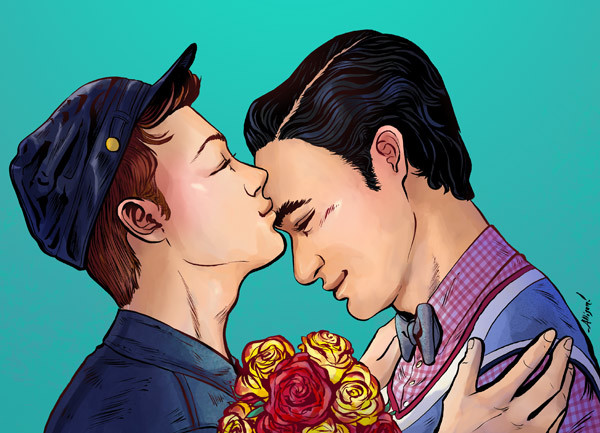 Oh my goodness! Sweetheart! Ah, I am going to cry into your beautiful palms-- I can't believe you did this! Oh gosh, what an amazing birthday gift! ah, they are so lovely in your style! I love this tender moment together-- so sweet and sexy! Ahh! Thank you, darling! Thank you so much for lending your incredible skills to a lovely knave such as myself-- you are the best!