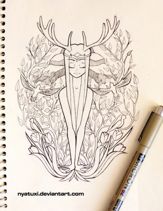 It's a beautiful line-art, I really like how you designed the scene and your flora and fauna is amazingly beautiful! Really looking forward for the finished artwork. :3Β