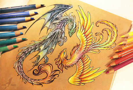 How breath taking! Great color use, really! Especially with color pencils. I really love the details in their feather robes and the fire has something very unique to it. I can't stop staring.