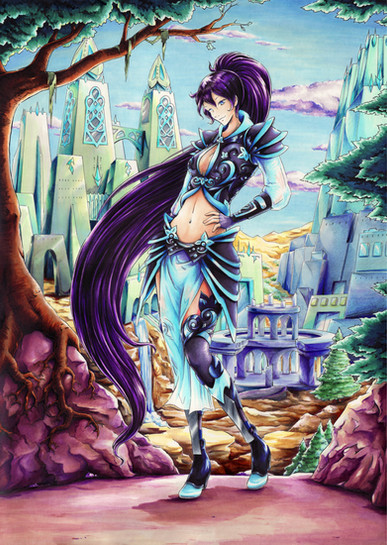WOW!!! That is COLORFUL, DETAILED, BEAUTIFUL, and well proportioned... AMAZING! Two thumbs up! I love it, beautiful environment and all with a hot warrior ass to gawk at!