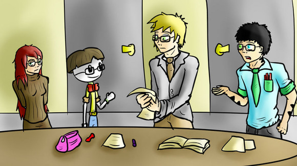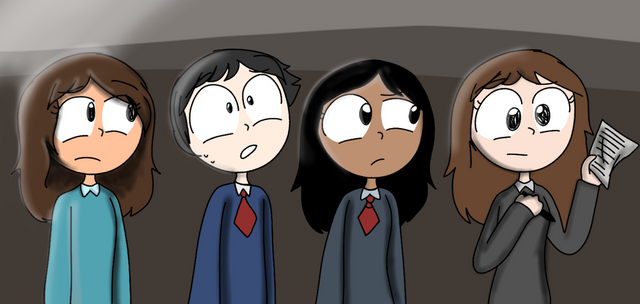 Happy Halloween I guess. I'm working on the reference sheets for the characters, but for now have this. (Left to right: Fara, Ronnie, Ava, Nick)