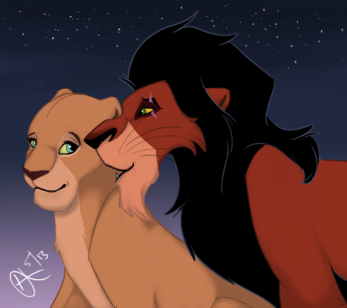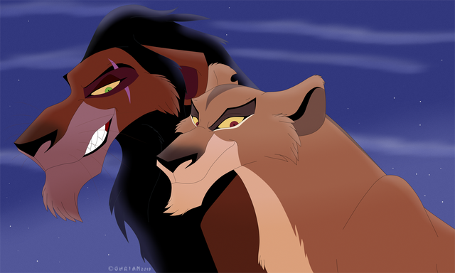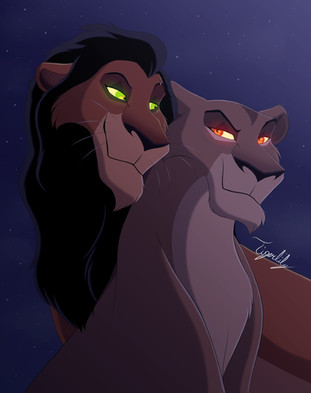 Scar and Zira - two my favorite villains from TLK :3На невьебенно крутой фон внимания не обращайте. Никакого настроения рисовать что-то приличное не было.