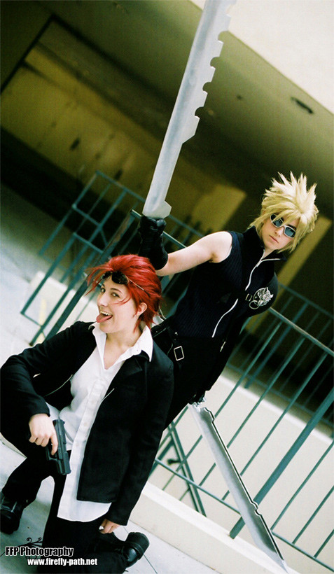 A shot from my our photoshoot with ff cosplayers at AX 2006 cosplayer: Pikminlink as Cloud and Cherry as RenoRelated content