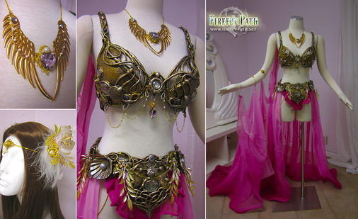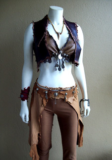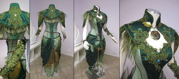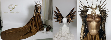 This is one in a set of three Goddess costumes made for Team Unicorn worn to The Labyrinth of Jareth Masquerade Ball. Using Organic Armor as the base we added a layered silk skirt and half cape . Notions of leather, feathers, and fur are repeated through out the costume. β with Stacey Bergeron and Organic Armor.