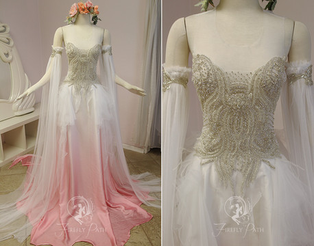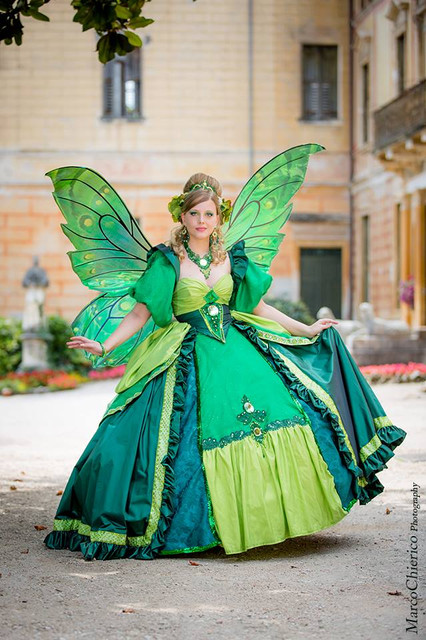 Follow my costuming & make-up on Facebook - [link]This elegant fantasy wedding crown is designed for the bride who is looking for a whimsical touch to complete her look. The metal filigree is flocked with white paint and flecks of fine glitter. The center jewel is a glass AB colored crystal. The crown attaches and fits all sizes with a silver elastic band at the back of the head. [link]