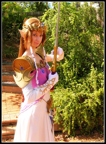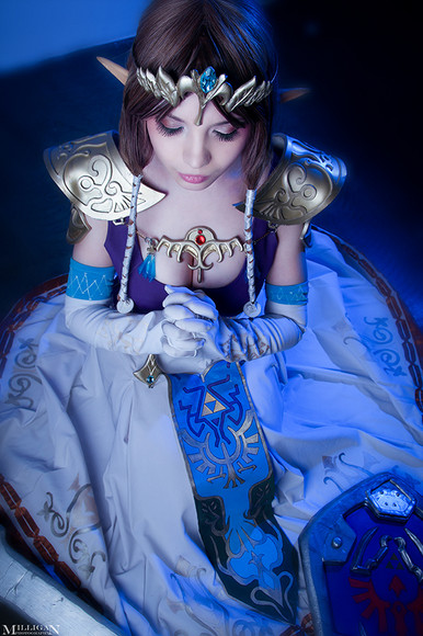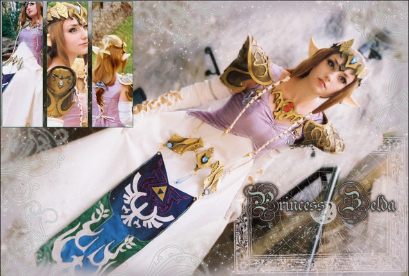 incredible cosplay, the zelda cosplay is beautiful and its looks exactly like her down to every detail and i just love the pose total damsel in distress love it!