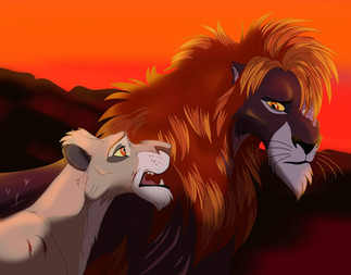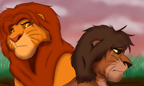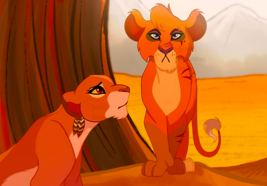 Kovu watched as his sister's eyes spilled over with tears. The young lion had seen many things, but had never seen Vitani cry. The siblings had sat in a quiet vigil all night after their mother's death, and as the sun broke over the horizon, the lioness beside him could no longer hold her grief. And yet, her face still twisted into something ugly, furious yet devastated. Kovu found himself at a loss for words.