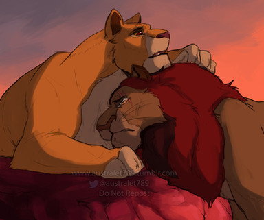 Vitani's fur brushed his as the lioness leaned against him, burying the side of her face into Kovu's mane as she cried. Kovu gave her a gentle lick on the forehead, hoping that some amount of affection would help her. It was something that neither of them were ever given as cubs, not from her.