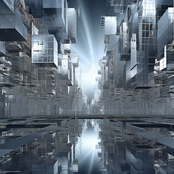 you've captured my heart with this. so many different illusions. i love the slant, i love how it's hard to tell if those pillars are made of glass or steel or something really reflective. so many perspectives... if i said anything more about how i love this, i'd look like a total suckup. but honestly, man... it's brilliant.