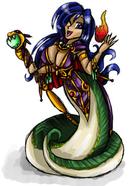This is a new char, Devika.She's a lamia. She looks all cute and adorable...but that's just a disguise. She'll eat your baby or suck your blood if you piss her off enough.