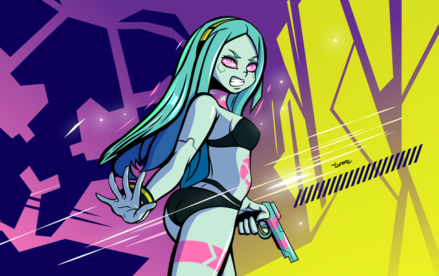 #bra #chrome #panties #rebecca #upgrades #edgerunners #finger_guns #cyberpunk_2077