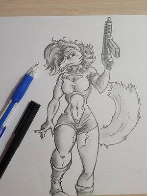 REALLY like the outfit, and the colours. Great linework too!