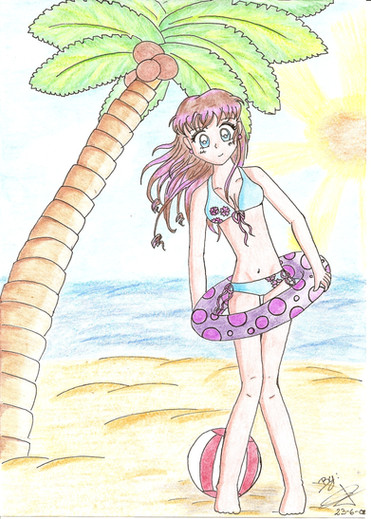 Nice job! I love her eyes and the waves in the background. ^_^