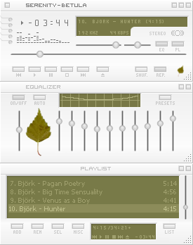 I love the On/Off and Auto buttons on the EQ! I'm a big fan of these really clean looking skins. Nice Job. I do, however, prefer a brighter font on the display. The Add, Sub, Sel, Misc buttons on the playlist are nice too. Very subtle skin -- I like it!