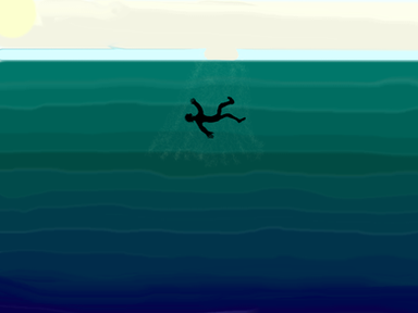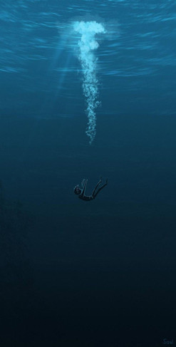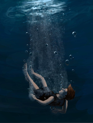 This is very very cool and right out sick!!!!!!!! I mean sick in a good way! XD The shape of this whole picture is a very interesting and nice perspective! You did bubbles and the pose of the character very well also. You fade the water as well which is a nice touch! Well done!
