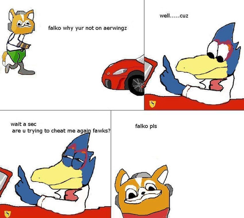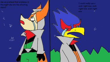 "Uh,what are you doing here?"Hey guys!This ship came in my mind after a person posted an image of a Kazooie who fell in love for Falco,and I chose to ship this.Idk why I like it so much XD.