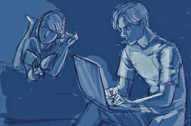 Hahaha your notes. This is makes me feel shippy too. I love how soft this all looks, if that makes sense, it must be the colours or maybe it's how exhausted Alfred looks. Lovely work.