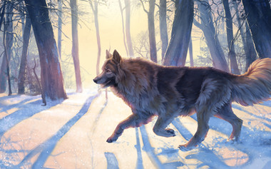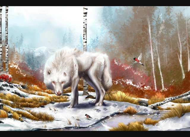 Well well this is an eye-boggler...Seriously, I can't look away. Way too cool, love. The texture of this piece just jumps right off the page and I love the color scheme. However, I do have to wonder how cold that wolf's paws are going to be if he missed the jump over that stream...Anyway, this is truly one to be proud of!!!
