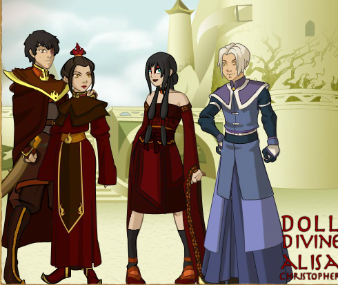 This is Casadaya. When she was a child she was brought to the Southern Water Tribe by her fleeing Fire Nation parents. Hakoda, finding her on the night of the blue moon(night of no moon), took her in not noing of her origins.A few years after the loss of Kaya, her step mother, she was found to be Fire Nation. There was a debate to see if she could stay ,but Hakoda had to leave for war before the dission was final. Sokka took it upon himself to deside and let her stay as long as she let them weaken her bending (in that stait she could outmatch Azula no prob.) She agreed to let them and stayed a close friend to Katara, though she dislike's Sokka for what he did. Like Katara, she has her birth mothers neaklace.