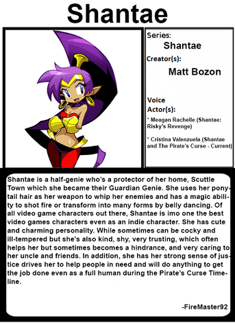 This is Shantae OC that I adopted fromPersonality: impatient, serious, sarcastic, Indifferent, snarky, easily disgusted and annoyed, honest, vain , sassy, independent, glamorous, not easily impress and trust, Stuck-up, mean
