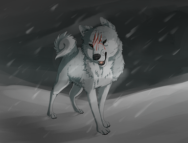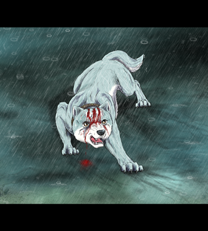 Bref, je n'ai rien à dire sur l'anatomie, déjà, car ça me parait parfait ! 8'3 (Ensuite, moi et l'anatomie... *PAF*) Les effets sont vraiment sympas et collent très bien avec l'ambiance ! ^^ Le flou sur la joue droite et sur les parties éloignées de Gin donne un effet 3D vraiment sympa ! Le sang est aussi très réaliste ! J'adore l'effet de mouillé que tu as mis autour de Gin pour signifier qu'il est trempé ! x3 Par contre, pour la pluie, j'aurais fait ça d'une autre façon : j'aurais fait des grosses et fines goutes très floues (flou de la vitesse, et flou du premier et arrière plan) , puis des goutes moyennes un peu moins floues sur le plan de Gin ! Ensuite, j'aurais un peu plus floué les arbres à côté de Gin ! (Tu fais les lines des arbres sur le même calque ?) Mais j'adore les couleurs que tu as utilisées, aussi, en arrière plan ! Et j'adore comment tu as fait pour dessiner les arbres éloignés ! C'est simple, mais ça rend très bien ! 8'3 En tout cas, en ce qui concerne les effets de fourrure et d'ombre, je n'ai rien du tout à reprocher, c'est super !